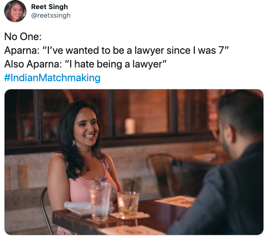 You might be thinking, are people even watching this show mess? Well, they certainly are. It’s become a bit of a meme, in fact, with several Instagram pages flooding people’s explore page with memes, character analyzes and cringe-worthy screenshots. But also, one thing you can say for the show is that it reveals something that a lot of non-Indians probably wouldn’t guess; that this “matchmaking” process is quite common. Moreover, it is an accurate depiction of how people like Sima Aunty pressure their clients. Guess that’s what draws people in, not the 67% it got on Rotten Tomatoes.